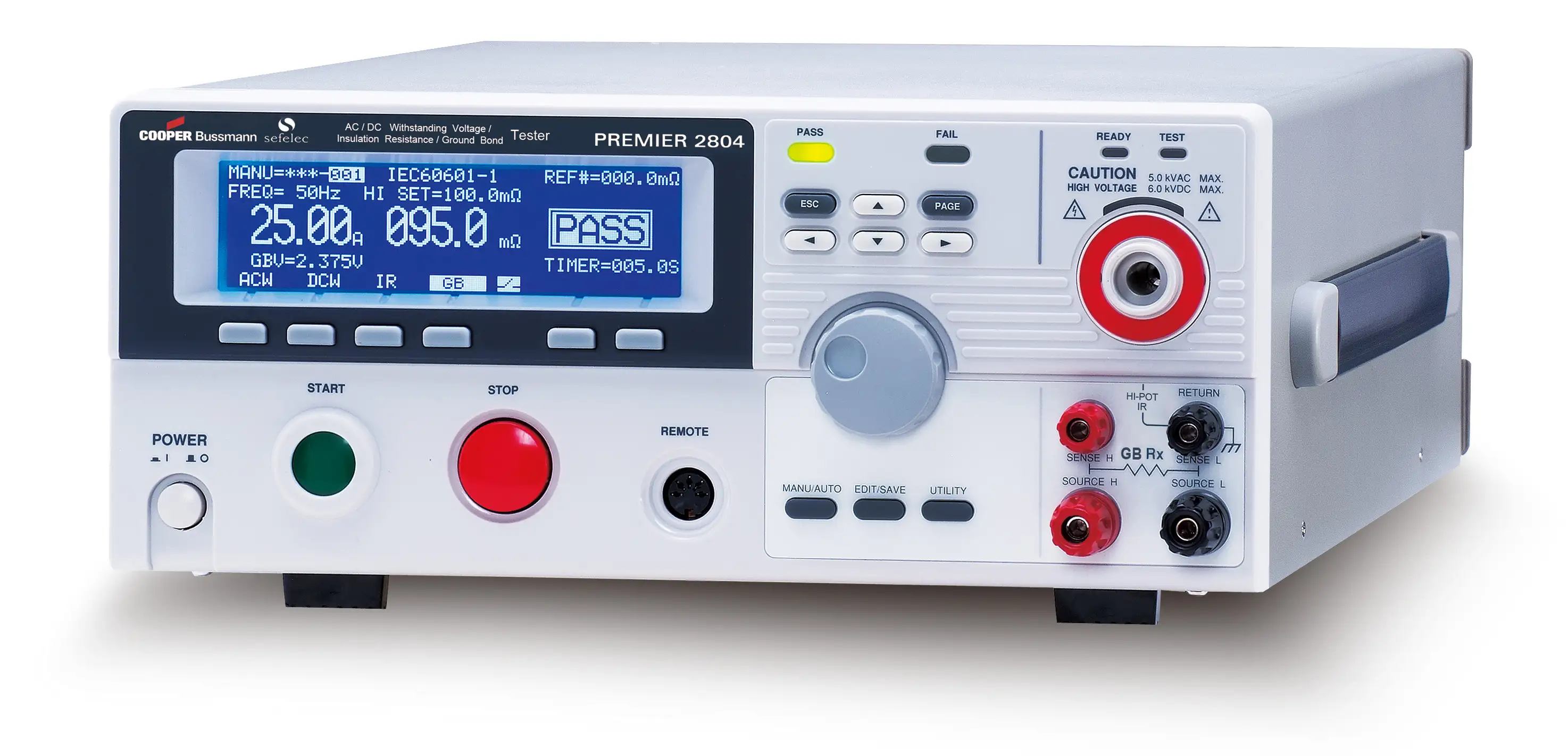 Testeur DBT 200VA, essais de rigidité 5 kV AC & 6 kV DC et d'isolement de 50V à 1000V - 9,5 GOhms, continuité des masses sous 32A
